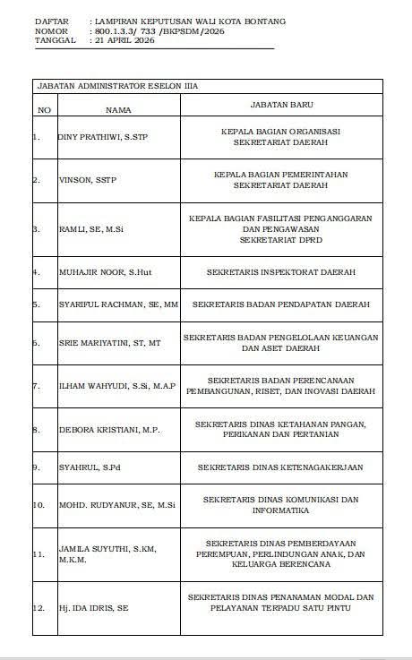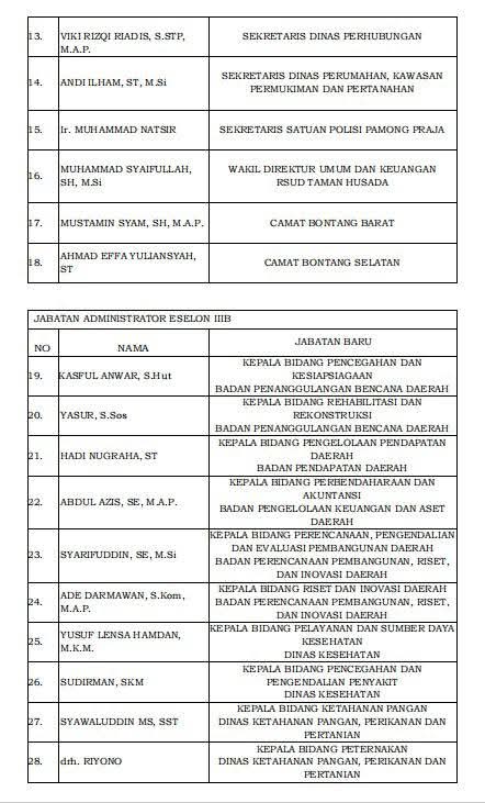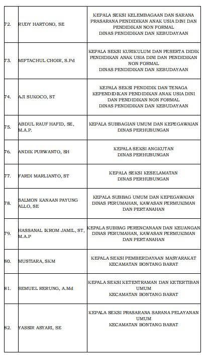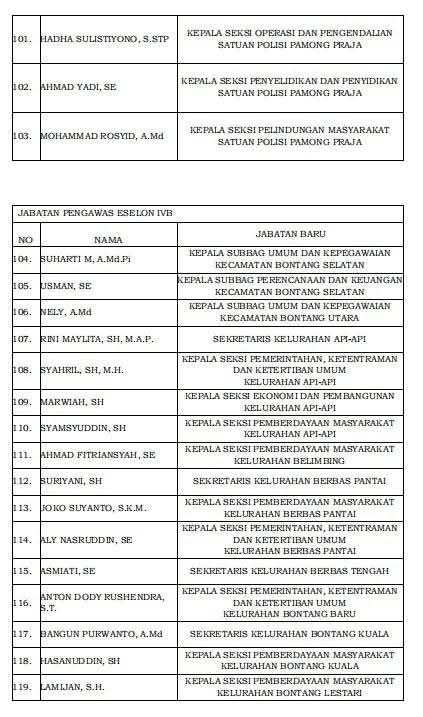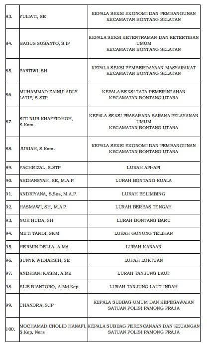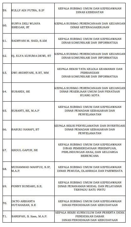 Berikut daftar Pejabat Eselon III yang mutasi Jilid Kedua Pasangan Neni Moerniaeni - Agus Haris.